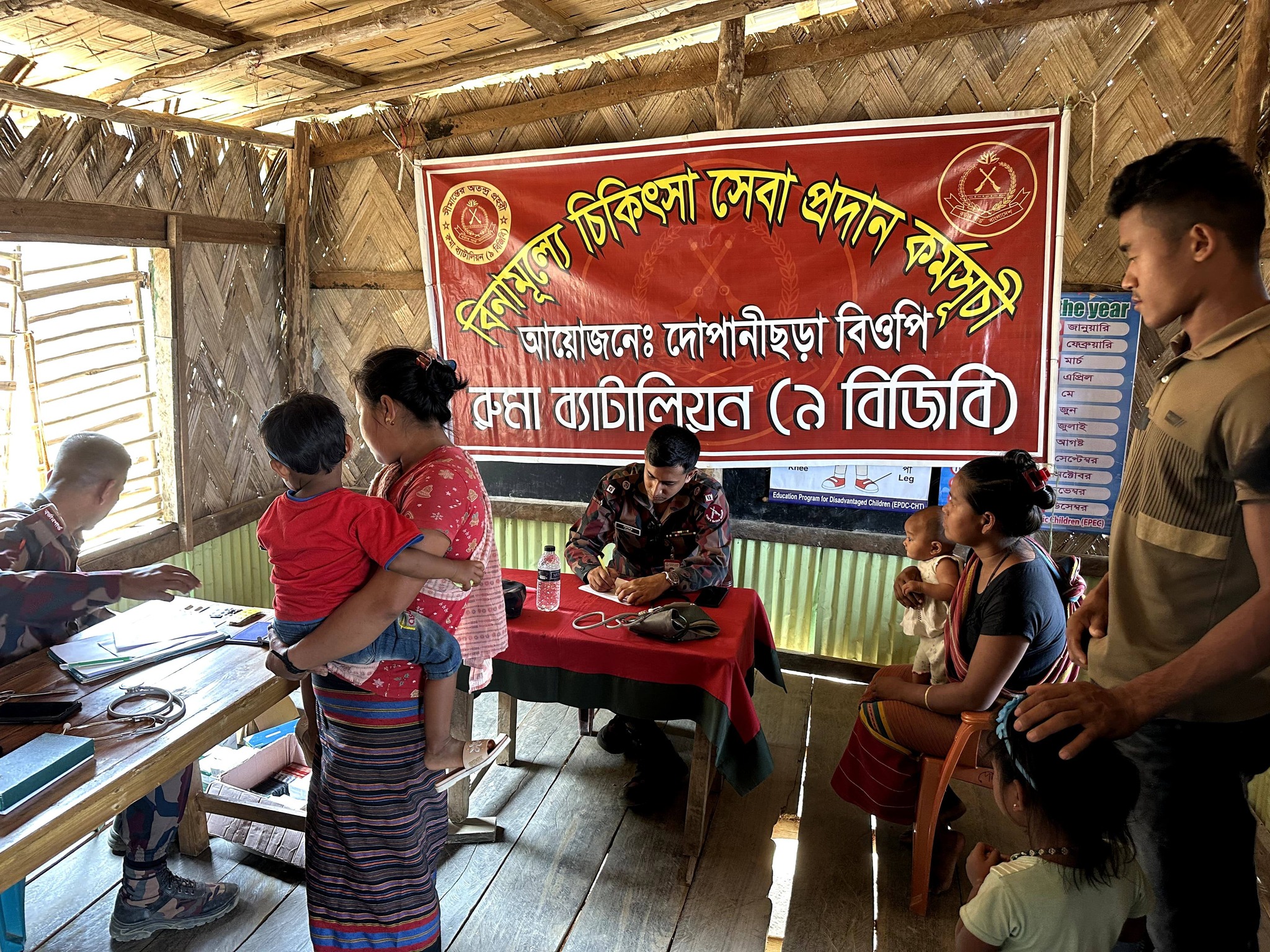 বিজিবির রুমা ব্যাটালিয়ন (৯ বিজিবি) এর উদ্যোগে রাঙামাটির বিলাইছড়ি উপজেলার দুর্গম সীমান্তবর্তী দোপানীছড়ায় গরীব, অসহায় ও প্রান্তিক জনগোষ্ঠীর স্বাস্থ্যসেবা নিশ্চিতকল্পে মেডিকেল ক্যাম্পেইনের মাধ্যমে বিনামূল্যে চিকিৎসাসেবা ও ওষুধ বিতরণ করা হয়েছে।